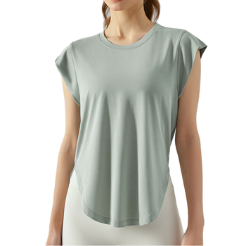 เสื้อโยคะผู้หญิงแขนสั้นน้ำหนักเบายืดหยุ่นระบายอากาศได้ดีผ้าสแปนเด็กซ์/ ไนลอนสูง